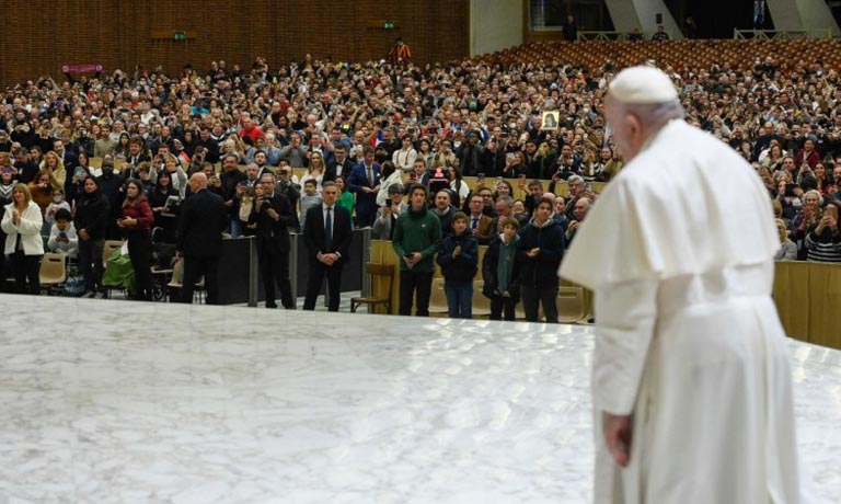 Terceiro aspecto: a luz. Jesus diz que veio para restituir «aos cegos o recobrar da vista» (ibid.). É impressionante que em toda a Bíblia, antes de Cristo, nunca aparece a cura de um cego, nunca. Com efeito, era um sinal prometido que viria com o Messias. Contudo, aqui não se trata apenas da vista física, mas de uma luz que faz ver a vida de modo novo. Há um “vir à luz”, um renascimento que só se verifica com Jesus. Pensando bem, foi assim que a vida cristã teve início para nós: com o Baptismo, que antigamente se chamava precisamente “iluminação”. E que luz nos dá Jesus? Traz-nos a luz da filiação: Ele é o Filho amado do Pai, vivo para sempre; e com Ele, também nós somos filhos de Deus, amados para sempre, não obstante os nossos erros e defeitos. Então, a vida já não é um avançar cego rumo ao nada, não: não é questão de destino ou sorte, não é algo que depende do acaso ou das estrelas, nem sequer da saúde ou das finanças, não. A vida depende do amor, do amor do Pai, que cuida de nós, seus filhos amados. Como é maravilhoso partilhar esta luz com os outros! Vocês já pensaram que a vida de cada um de nós – a minha vida, a tua vida, a nossa vida – é um gesto de amor? É um convite ao amor? Isto é maravilhoso! Mas muitas vezes esquecemos isto, face às dificuldades, diante das más notícias, também diante – e isto é terrível – da mundanidade, do modo de viver mundano.